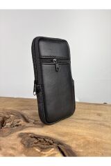 Hakiki Deri Unisex Telefon Çantası, Deri Bel Çantası, Çok Bölmeli Deri Omuz Çantası Siyah