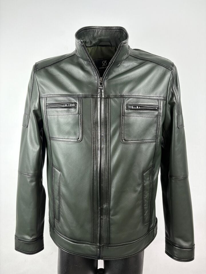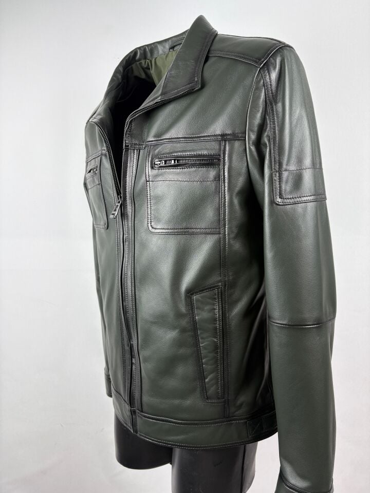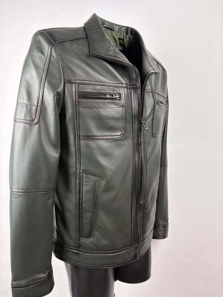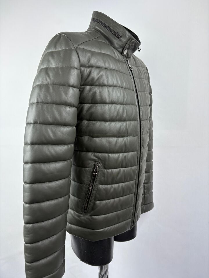 Haki Şişme Deri Mont Hakiki Deri