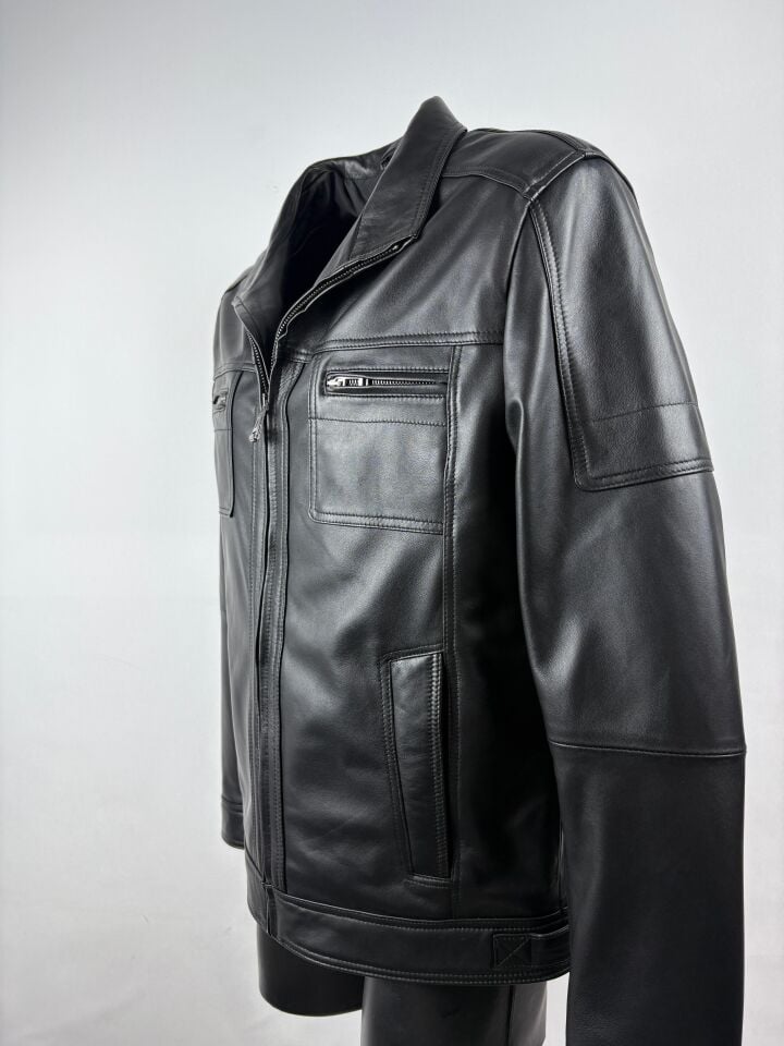 Hakiki Deri Siyah Slim-Fit Deri Mont