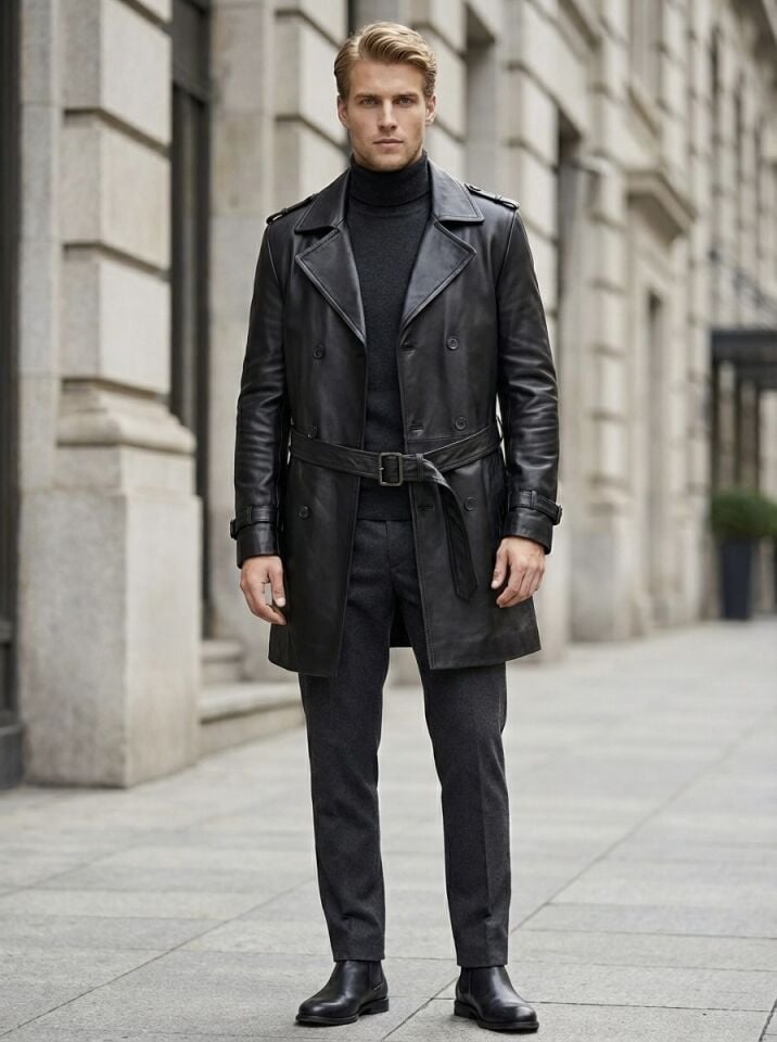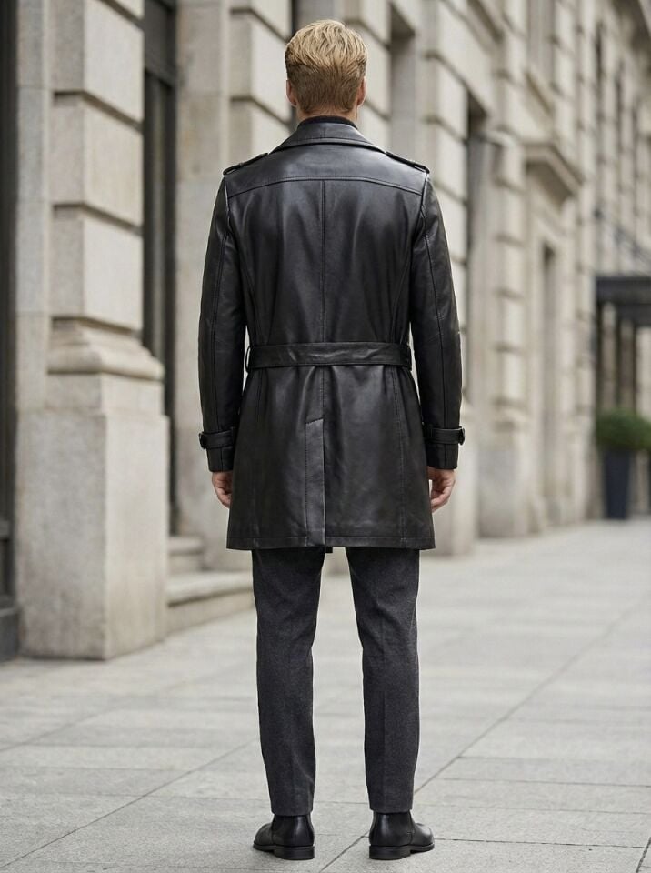 Hakiki Deri Erkek Siyah Trençkot