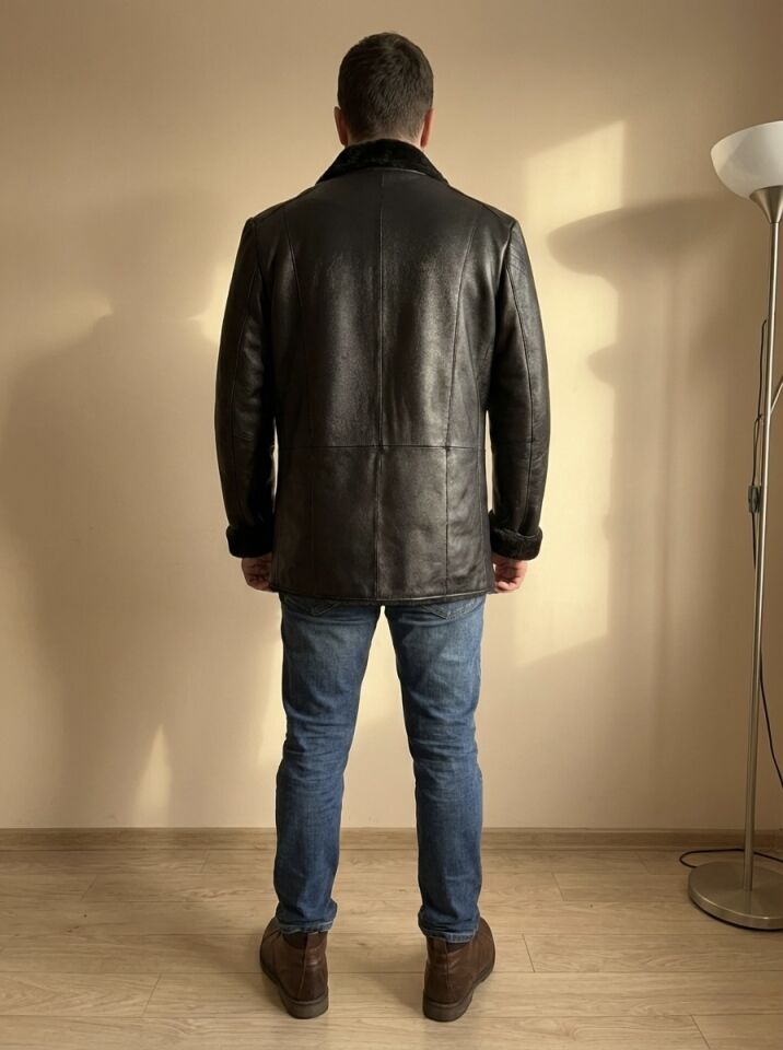 Çakır Hakiki Deri Siyah Kürklü Kaban