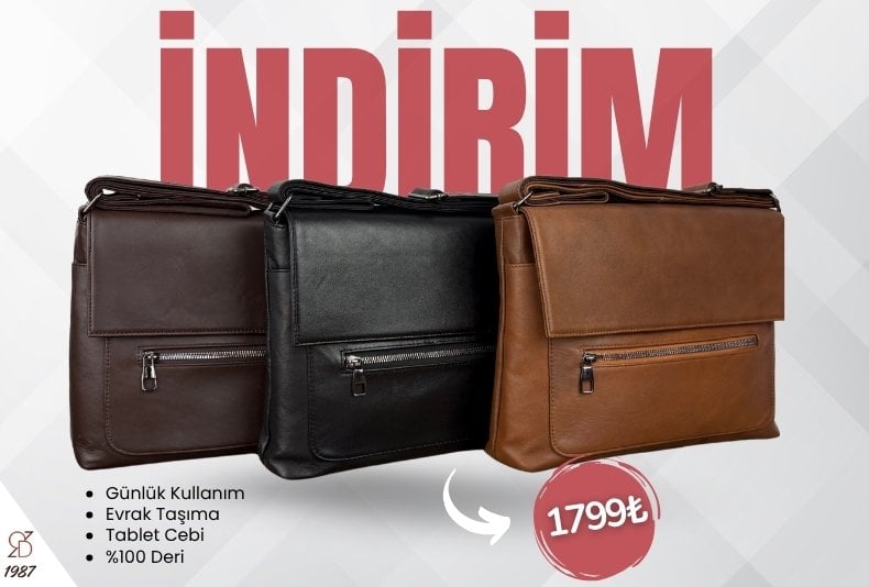 Hakiki Deri Orta Boy El Çantası Askılı,Deri Çanta, El Çantası siyah Orta Boy Erkek
